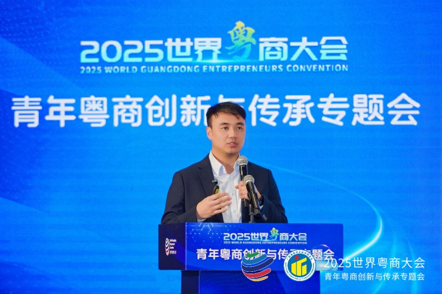 图为许晋诚在2025世界粤商大会“青年粤商创新与传承”专题会上演讲