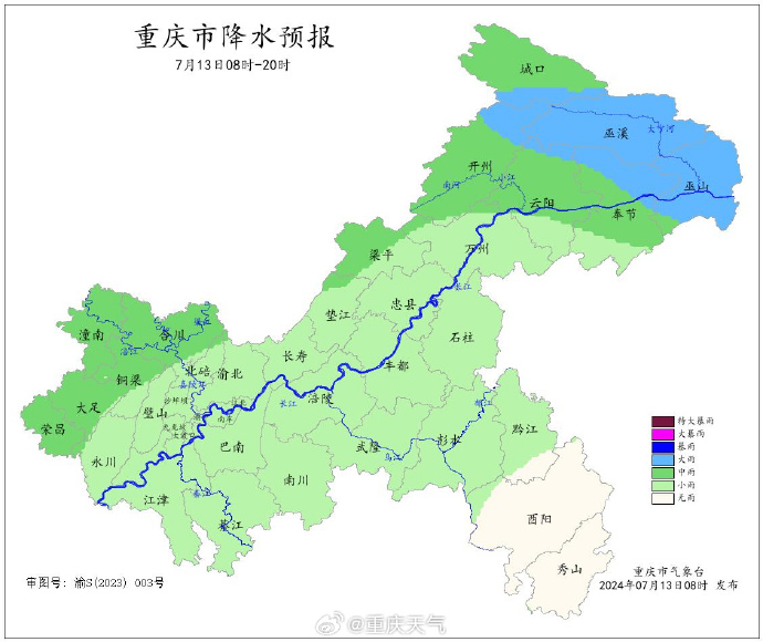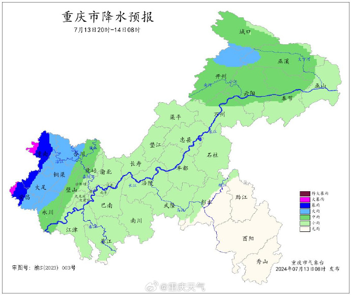重庆市气象台7月13日9时发布消息:今天重庆部分地区仍有暴雨,明起降雨逐渐结束。
